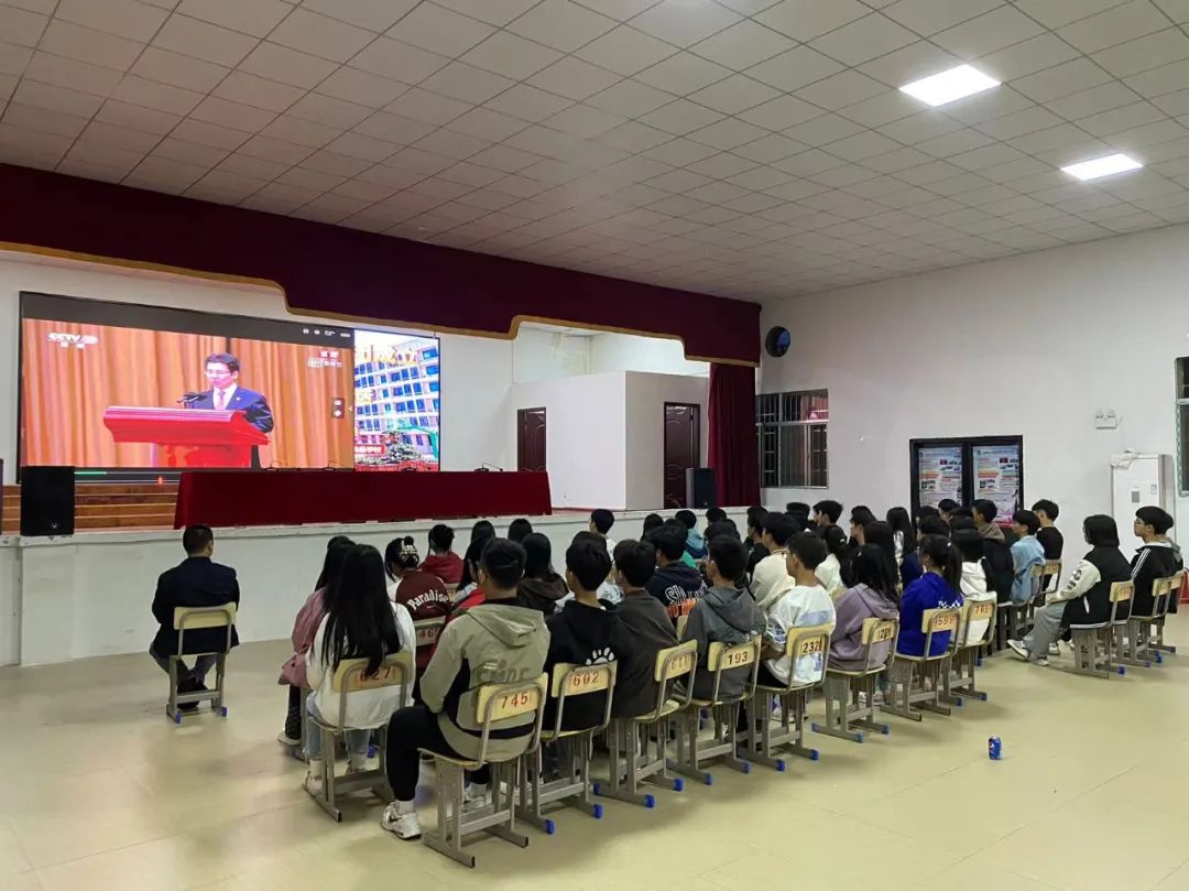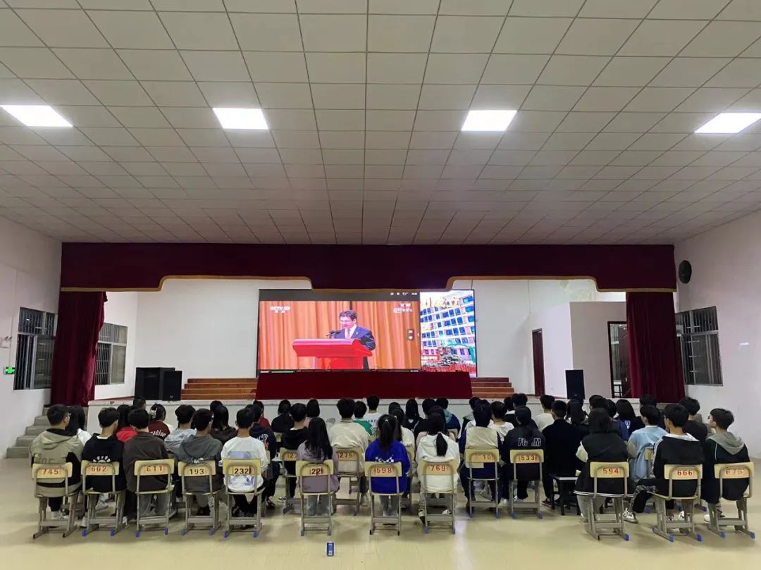 我校于5月10日利用晚自習(xí)時間積極組織,各班級團組織、團員青年觀看大會直播。校長張愛斌、校團委書記谷祥錦、副書記龍蕾、團學(xué)會及各班團支部班子成員以及部分青年代表在學(xué)校報告廳,收聽收看大會實況直播,認(rèn)真聆聽習(xí)近平總書記重要講話。